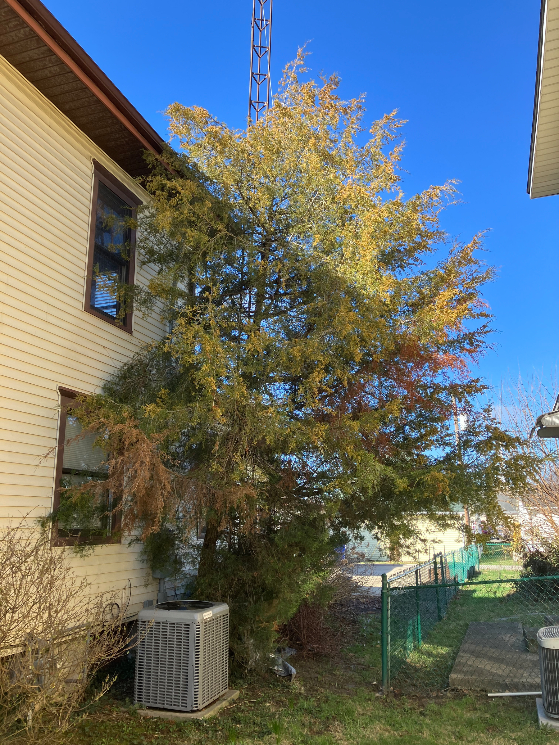 This is as far as I got with a handsaw. My father-in-law is going to come over with his chainsaw to cut it closer to the ground and chunk it up for firewood. While I was doing that, Rachel pulled all the limbs around front, plus a bunch of other clean-up. Then I took a nap in the sun!