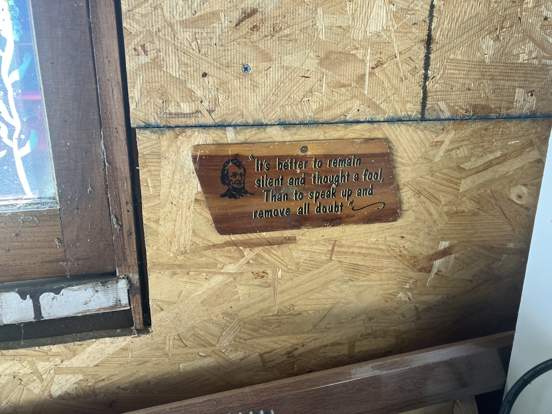 My mom gave me this roadside tchotchke last week. Looks to be from Columbus, Mississippi or Missouri, neither of which have a Lincoln connection as far as I can tell. But that’s part of the weird Americana charm, right? I have a long memory of it hanging in our garage, so I’ve hung it in mine.