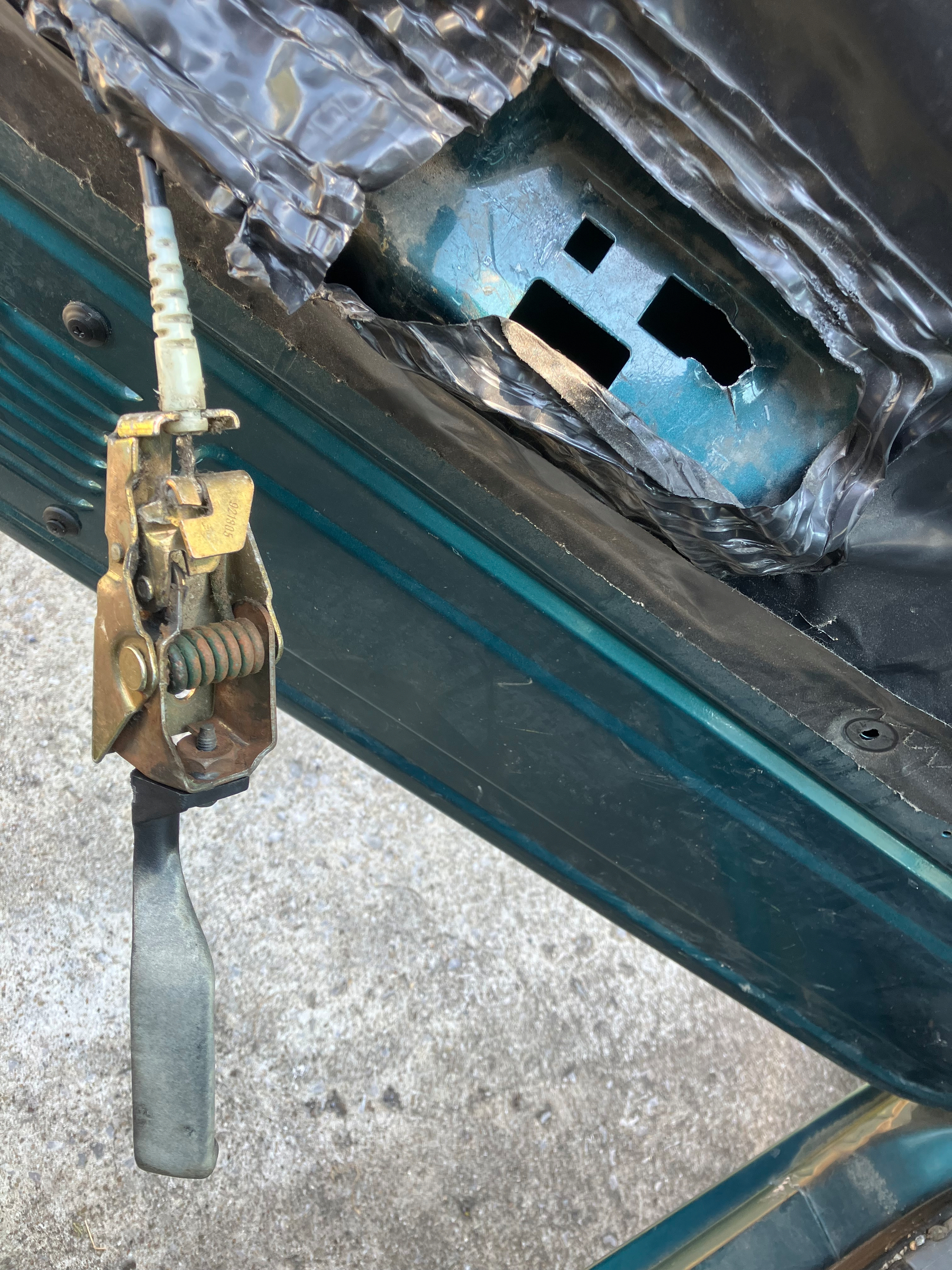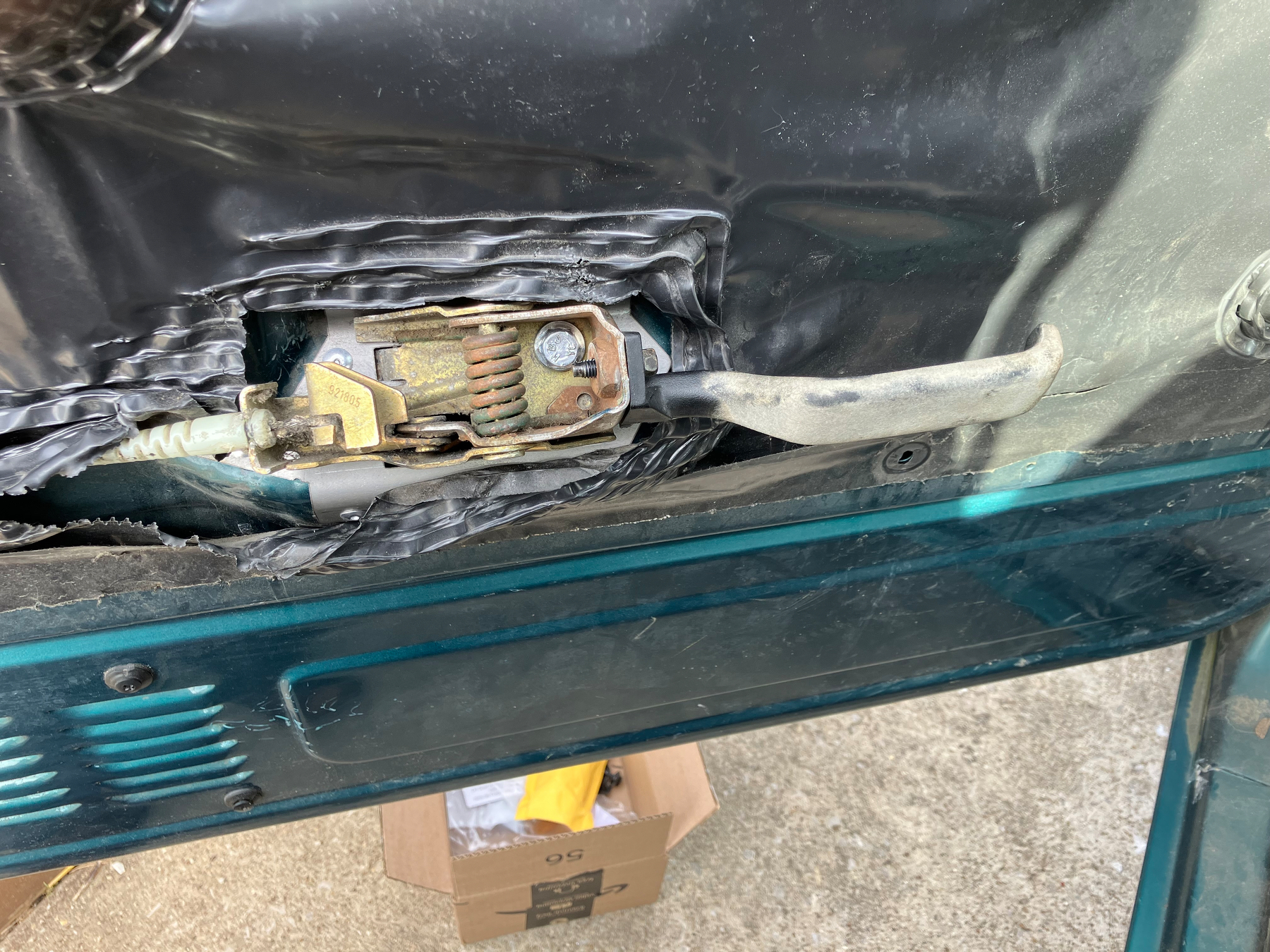 I got all the parts in on Friday. I never did find the part number for the U nut I needed. The ones I bought weren’t exactly right but they were close enough. In the end, I had to buy a different bolt and a smaller washer (total: $0.58) and temporarily remove the handle in order to get it to fit. I got to use a hand riveter for the first time and that was fun!