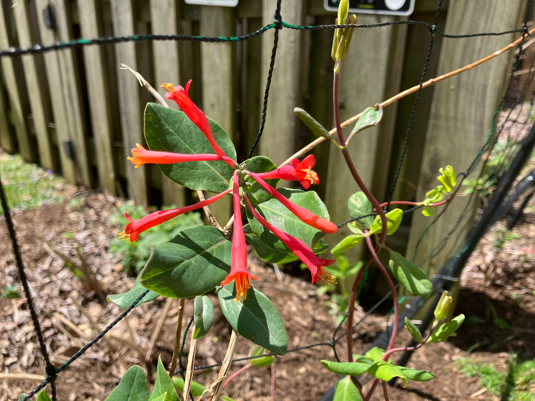 Honeysuckle. This was one of my requests for the garden because I associate it with summer in my childhood.